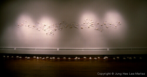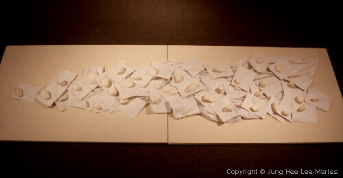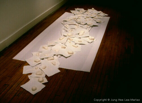 Papier-mâché and handmade paper installation, 168" x 84" x 24" |