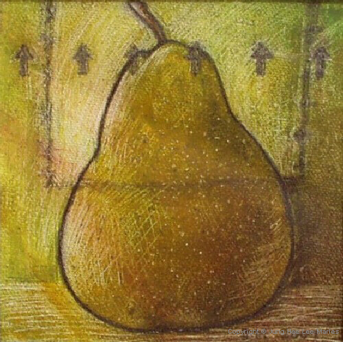 Mixed media drawing on linen, 7" x 7" (private collection) |